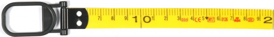 Měřící pásmo o délce 50 m s šířkou 15 mm.