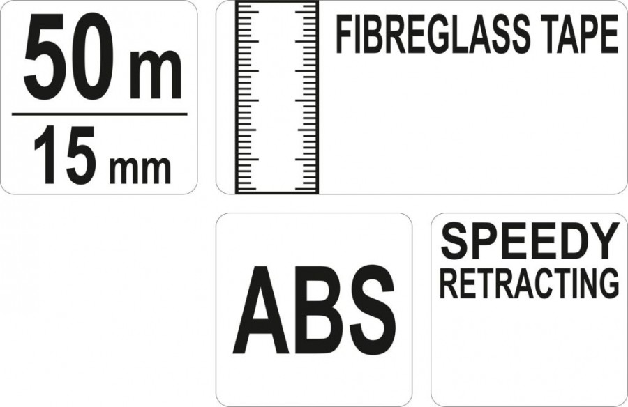 Popis: Pásmo měřící, skleněné vlákno, 50m, 15mm