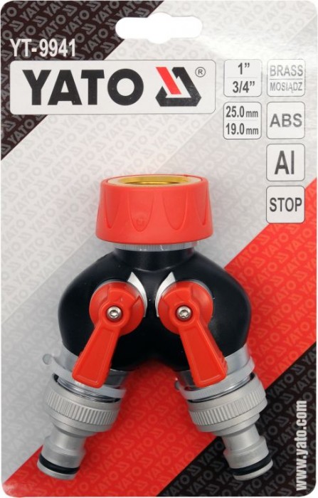 Hadicová spojka k propojení hadic mezi sebou. Závitové napojení. Spojka ve tvaru ,,Y" pro napojení až 3 hadic. 2 uzávěry pro možnost snadné regulace přítoku vody. Jednoduchá a rychlá montáž/demontáž. Pro průměr 13 mm. Hliníková konstrukce. Značka YATO je záruka vysoké kvality.