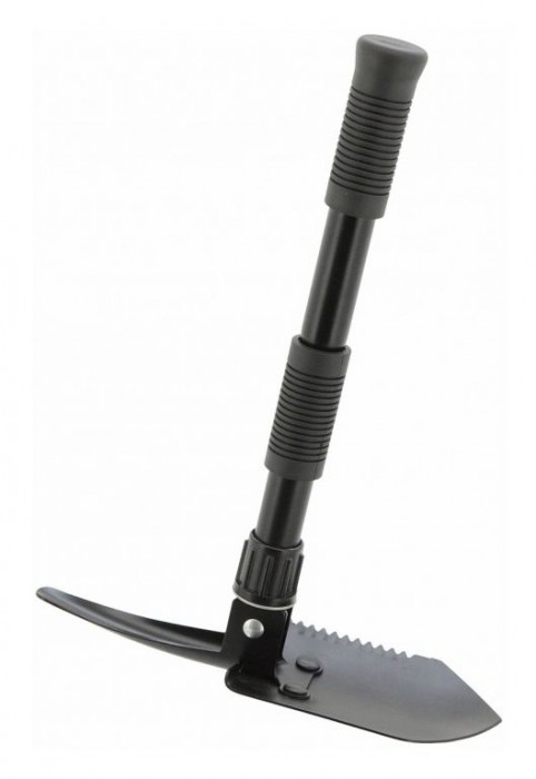 Lopatku lze používat konvenčním způsobem jako lopatu, čepel je však ještě vybavena pilkou a lze ji sestavit i jako motyku.