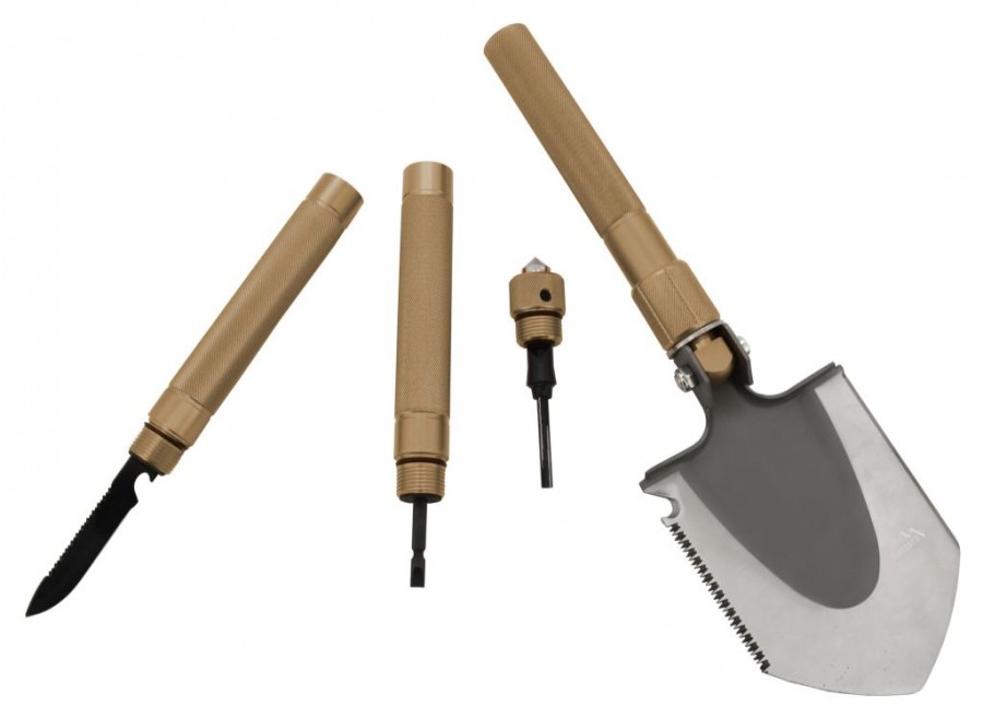 Lopatku lze používat konvenčním způsobem jako lopatu, čepel je však ještě vybavena pilkou a lze ji sestavit i jako motyku. Mimo jiné jsou součástí i drobné doplňky ukryté v útrobách těla, ty tak budete mít vždy při ruce. Nejpatrnější je kopí se zakončením pro nouzové rozbití oken. Mezi ukrytými doplňky najdete křížový a plochý šroubovák, nůž s pilkou a otvírákem, křesadlo a píšťalku. Samotná lopatka je prakticky a snadno sestavitelná, po sešroubování částí rukojeti, stačí již pouze volba nástroje, jeho předsazení a jedna aretace maticí na rukojeti. Rukojeť je navíc opatřena protiskluzným vroubkováním pro pohodlný a bezpečný úchop.