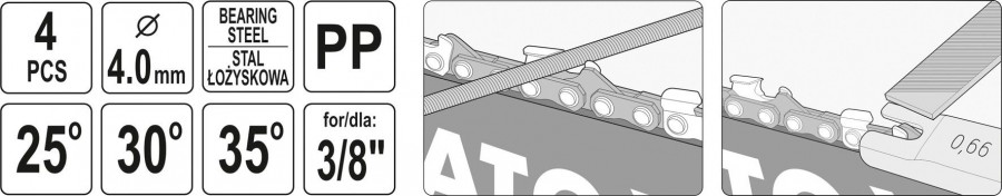 Popis: Sada pro ostření pilových řetězů 4,0mm