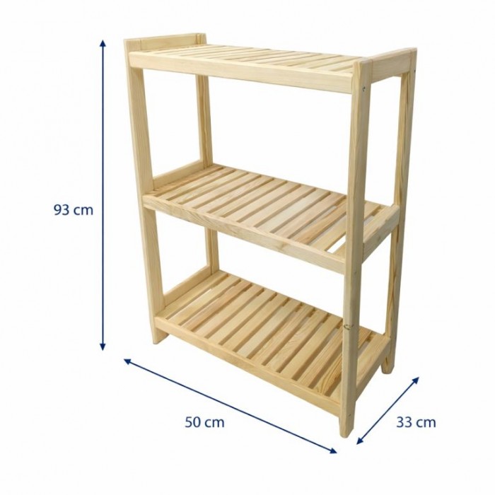 Dřevěný regál 3 police 93×50×33 cm, borovice, česká výroba