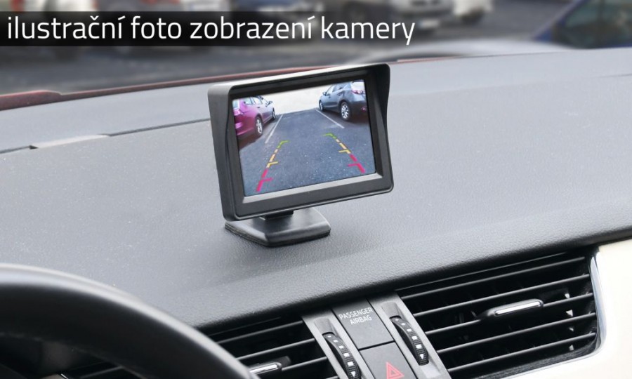 Bezdrátová parkovací kamera s úhlem záběru 120°. Kamera Dice je sestavena společně se stojánkem a umožňuje vlastní nastavení úhlu snímání. Zajištěno tak je snadné umístění na libovolné místo a správné nasměrování. Celá sada je zakončena žlutým cinch konektorem video signálu (RCA), který je možné zapojit do libovolného displeje s video vstupem. V našem sortimentu jsou dostupné různé displeje vhodné pro umístění do auta. Samotná kamera disponuje pomocnou parkovací trajektorií.