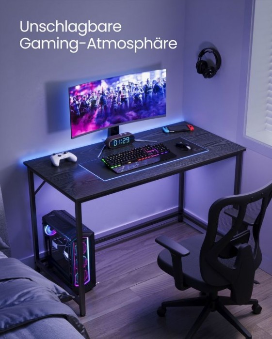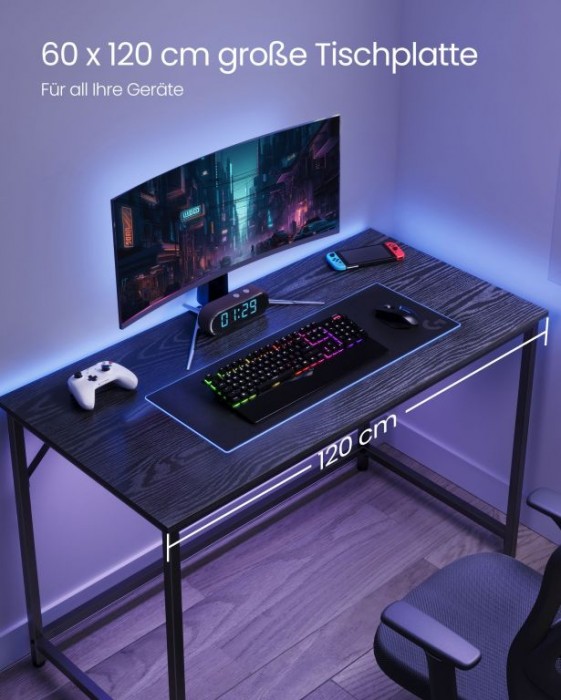 Moderní černý herní stůl s ocelovým rámem, 120x60x75 cm