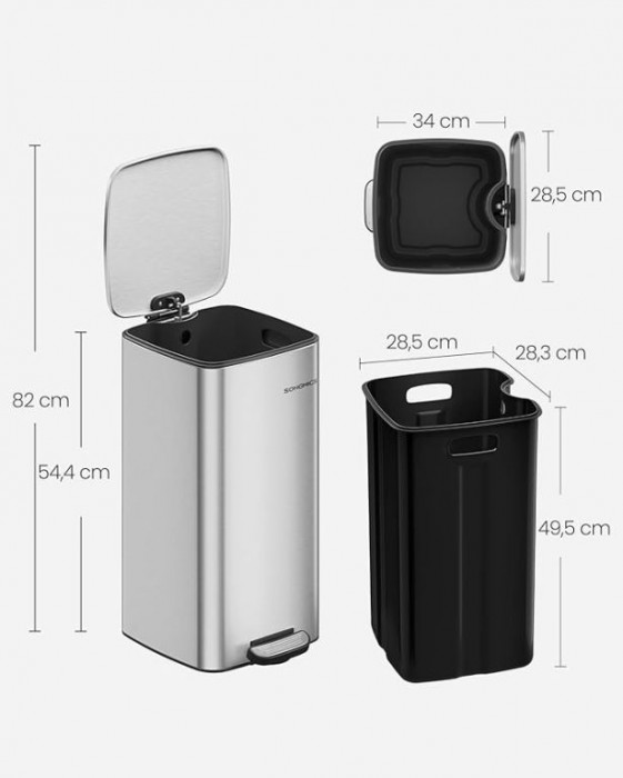 Stabilní provedení s protiskluzovými podložkami zajišťuje, že koš zůstane pevně na místě, i když doma máte děti nebo domácí mazlíčky. Praktická vnitřní nádoba s madly umožňuje snadnou manipulaci s odpadem a hygienickou výměnu pytlů. Je to ideální volba pro každého, kdo ocení funkčnost, čistotu a dlouhou životnost v každodenním provozu.