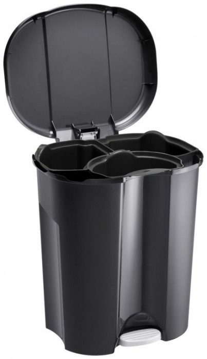 TRIO Odpadkový koš, 2 x 15 L + 1 x 10 L, plast, černý/šedý