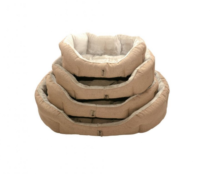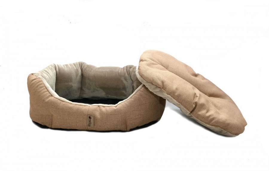 Ručně šitý pelíšek vysoké kvality. Pelíšek je ušit ze 100% bavlny s nepromokavým dnem. Vyplněn je dutým vláknem a molitanovou výztuží boků. Vyndavací oboustranné dno, z jedné strany heboučký fleece, z druhé strany textilie. Lze prát ručně (maximální teplota 40 °C). Nečistit chemicky, nesušit v sušičce. Aby nedošlo k nerovnoměrnému rozmístění výplně, je pelíšek v několika bodech prošitý. Pelíšek je český výrobek.