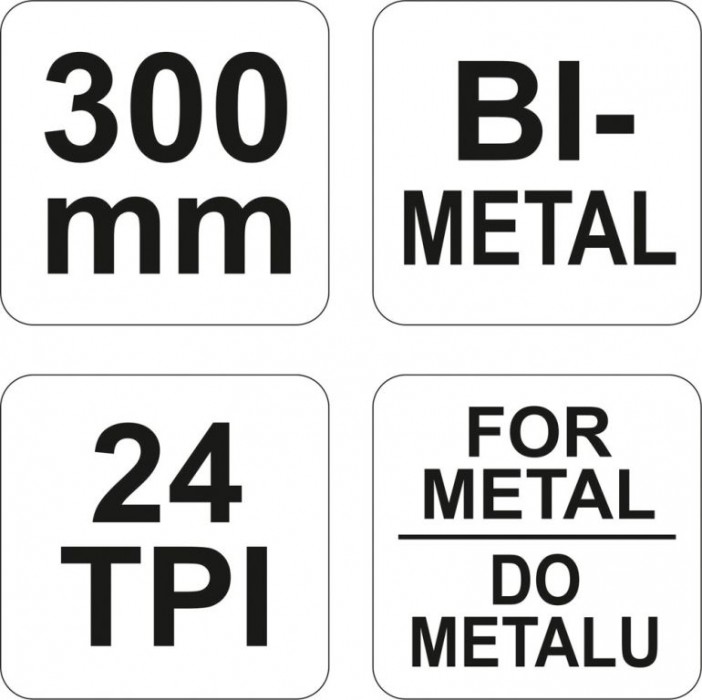 Dodáváno s bimetalovým pilovým listem 300 x 12 mm, 24 tpi.