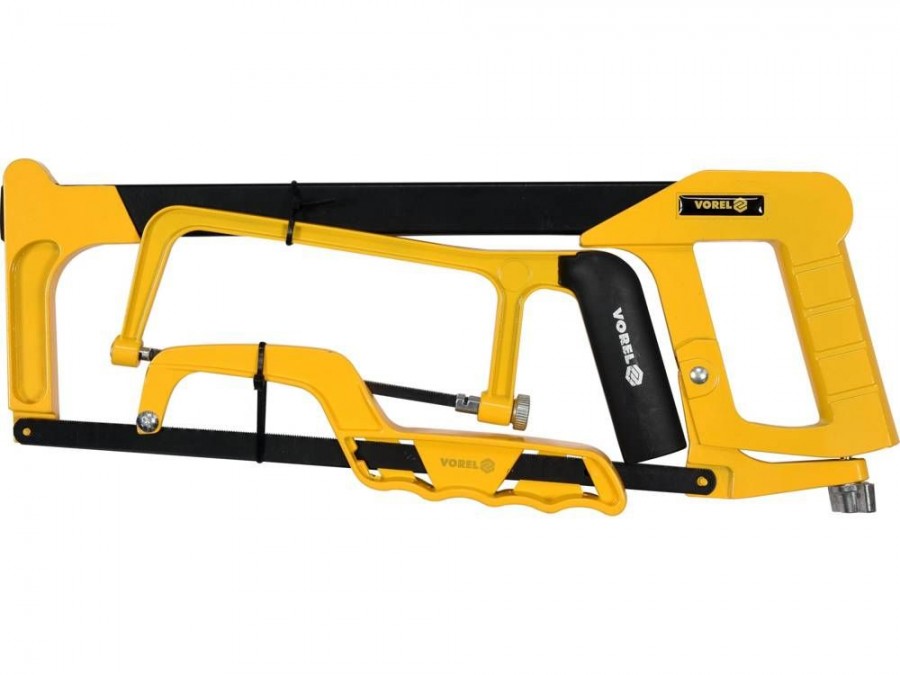 Kvalitní sada pilek na železo s hliníkovým rámem. Pilka s rámečkem L má pilový list o délce 300 mm s 24 zuby, pilka s pogumovanou rukojetí má pilový list o délce 150 mm s 24 zuby a nožová pilka má pilový list o délce 300 mm s 24 zuby.
