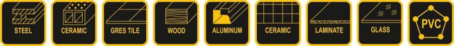 Spodní část rukojeti je opatřena speciálním výřezem pro rozbití skla nebo dlaždic.