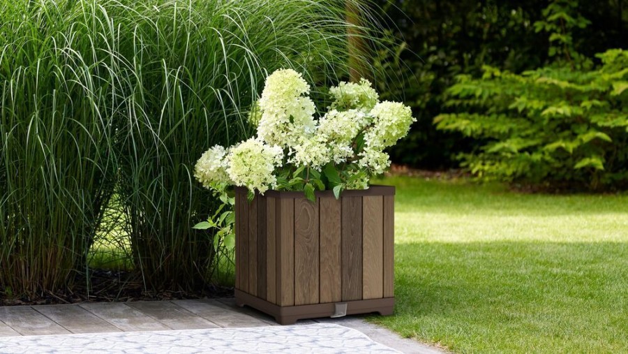 Díky bezúdržbovému a extrémně odolnému povrchu, který je rezistentní vůči všem povětrnostním vlivům, si květináč zachová svůj elegantní vzhled po dlouhá léta. Povrch v barvě walnut (vlašský ořech) dodává květináči sofistikovaný a nadčasový vzhled, který obohatí každý prostor.