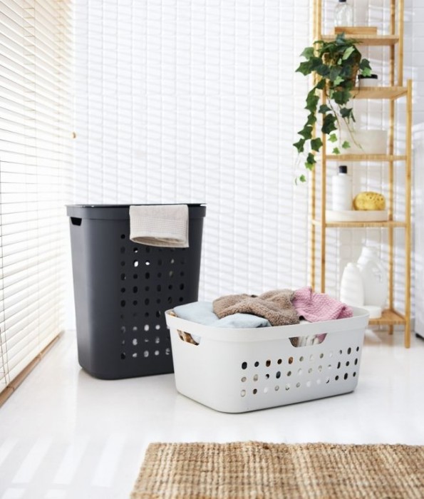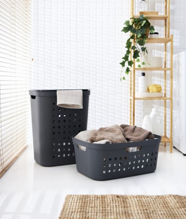 Plastový koš na špinavé prádlo. Jednoduchý a moderní design zajišťují cirkulaci vzduchu. Úchyty pro snadné přenášení. Švýcarská kvalita od značky Rotho.