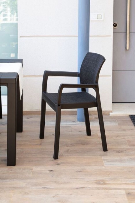Zahradní plastové křeslo ALBA s područkami - Pohodlí, pevnost a styl v jednom! LEHKOST A PEVNOST: I přes svou nízkou hmotnost je křeslo ALBA velmi pevné a stabilní. Díky tomu můžete snadno přesunovat a umístit ho tam, kde právě potřebujete. ELEGANTNÍ DESIGN: Opěrka a sedák křesla jsou elegantně provedeny v oblíbené imitaci ratanu, což dodává vaší zahradě nebo terase moderní a stylový vzhled. SNADNÁ ÚDRŽBA: Materiál tohoto křesla je vyroben z pevného recyklovaného plastu, což zajišťuje odolnost vůči nepříznivým povětrnostním podmínkám a UV záření. Údržba je snadná a rychlá, stačí jednoduše otřít vlhkým hadříkem. STOHOVATELNOST: Křeslo lze snadno skládat a stohovat, což z něj dělá praktickou volbu pro uskladnění mimo sezónu. BAREVNÉ PROVEDENÍ: Grafitové provedení křesla ALBA je univerzální a skvěle doplní mnohé stoly či sestavy v této barvě, což Vám umožní vytvořit elegantní a vkusné venkovní prostředí. Křeslo ALBA - spojení pohodlí, funkčnosti a stylového designu. Vytvořte si svůj vlastní relaxační ráj v zahradě s naším křeslem ALBA!