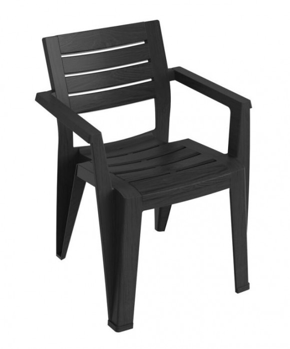 Plastové zahradní křeslo LIDO v imitaci dřeva je velmi lehké, ale zároveň i velice pevné a stabilní. Křeslo je stohovatelné a díky tomu i praktické pro případné uskladnění. Použitý materiál je pevný recyklovaný plast. Křeslo je odolné nepřízni počasí i UV záření a vyznačuje se velmi snadnou údržbou. Díky grafitovému provedení může doplnit mnohé stoly či sestavy v této barvě.