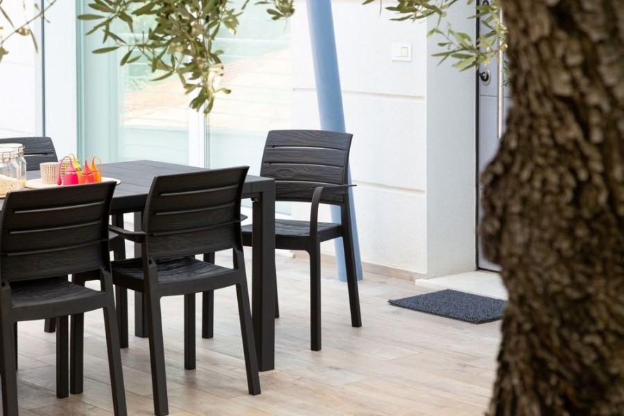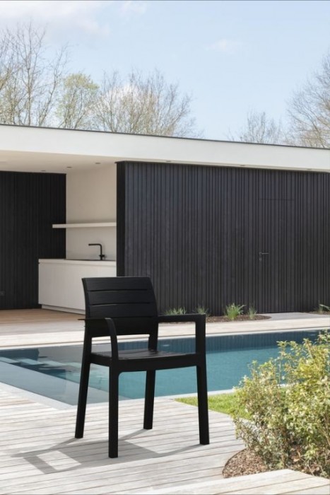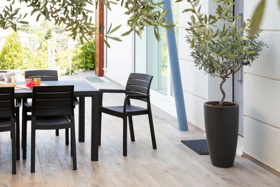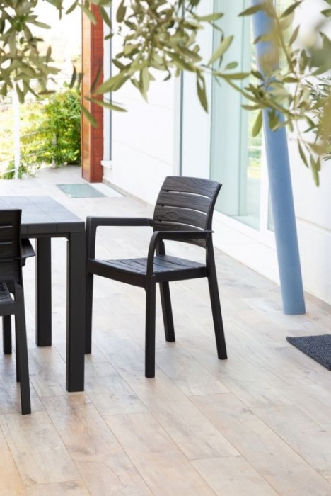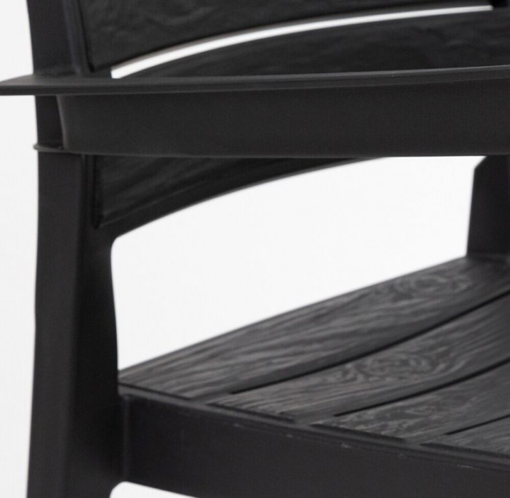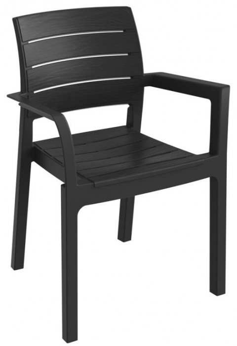 Zahradní plastové křeslo RECANATI s područkami - Pohodlí, pevnost a styl v jednom! LEHKOST A PEVNOST: I přes svou nízkou hmotnost je křeslo RECANATI velmi pevné a stabilní. Díky tomu můžete snadno přesunovat a umístit ho tam, kde právě potřebujete. ELEGANTNÍ DESIGN: Opěrka a sedák křesla jsou elegantně provedeny v oblíbené imitaci ratanu, což dodává vaší zahradě nebo terase moderní a stylový vzhled. SNADNÁ ÚDRŽBA: Materiál tohoto křesla je vyroben z pevného recyklovaného plastu, což zajišťuje odolnost vůči nepříznivým povětrnostním podmínkám a UV záření. Údržba je snadná a rychlá, stačí jednoduše otřít vlhkým hadříkem. STOHOVATELNOST: Křeslo lze snadno skládat a stohovat, což z něj dělá praktickou volbu pro uskladnění mimo sezónu. BAREVNÉ PROVEDENÍ: Grafitové provedení křesla RECANATI je univerzální a skvěle doplní mnohé stoly či sestavy v této barvě, což Vám umožní vytvořit elegantní a vkusné venkovní prostředí. Křeslo RECANATI - spojení pohodlí, funkčnosti a stylového designu. Vytvořte si svůj vlastní relaxační ráj v zahradě s naším křeslem ALBA!