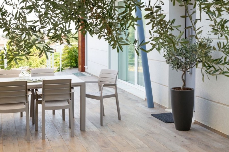 BAREVNÉ PROVEDENÍ: šedé provedení křesla je univerzální a skvěle doplní mnohé stoly či sestavy v této barvě, což Vám umožní vytvořit elegantní a vkusné venkovní prostředí.