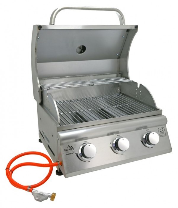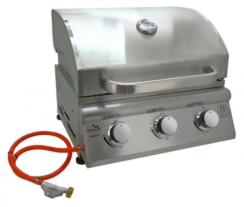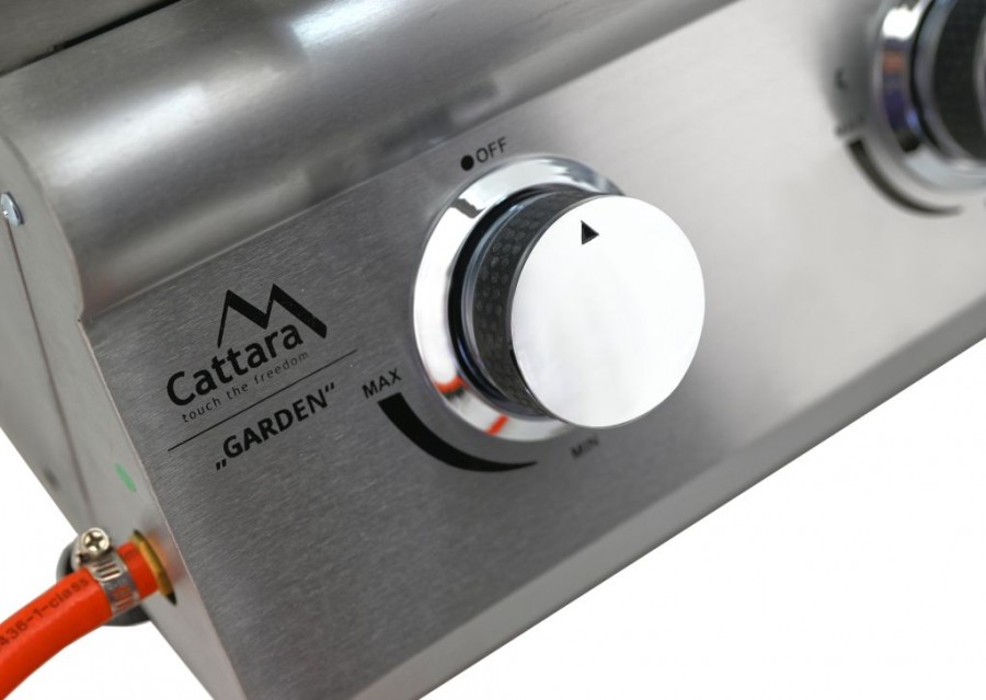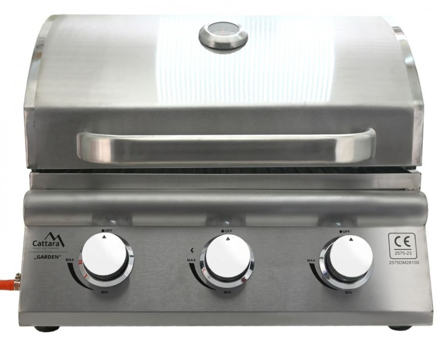 Modulární zahradní kuchyně Cattara TORINO má gril s 3 hořáky s regulací a piezo zapalováním, vhodný pro přímé i nepřímé grilování. Obsahuje odkládací rošt, 1m plynovou hadici a redukční ventil. Systém Flame Tamer zabraňuje vzplanutí tuku a rovnoměrně ohřívá grilovací mřížku. Gril lze doplnit motorem pro grilování kuřat. Konstrukce z nerezové oceli je odolná a elegantní, víko má teploměr a madlo pro snadnou manipulaci. Gril je vybaven poličkou na zachytávání tuku a nastavitelnými nožkami pro vyrovnání. Gril Garden je vhodný pro použití se systémem Cattara TORINO, dohromady tak tvoří ideální venkovní kuchyň pro pohodlné grilování a zpříjemnění pobytu na zahradě.
