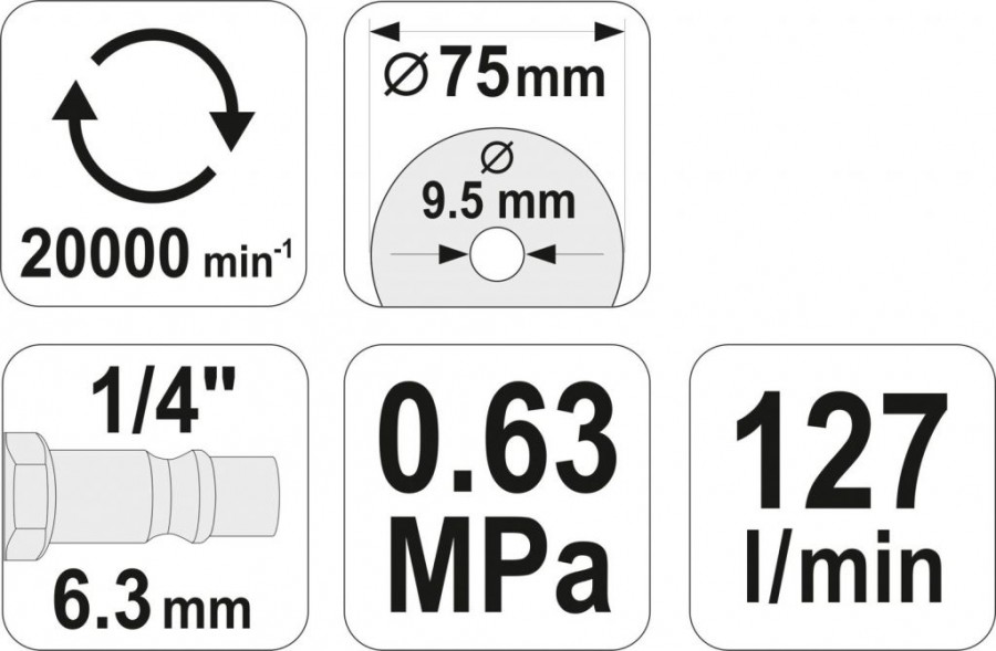 - max. pracovní tlak vzduchu: 0,63 MPa