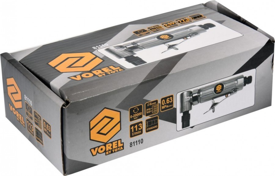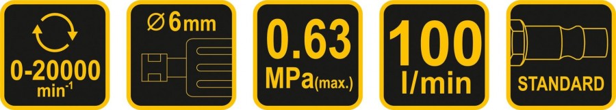 Tato pneumatická bruska je nářadí poháněné proudem vzduchu stlačeného pod správným tlakem. Řezné a brusné kotouče mohou řezat a brousit různé materiály. Bruska je opatřená rychlospojkou, kterou může být napojena na vzduchový systém.
