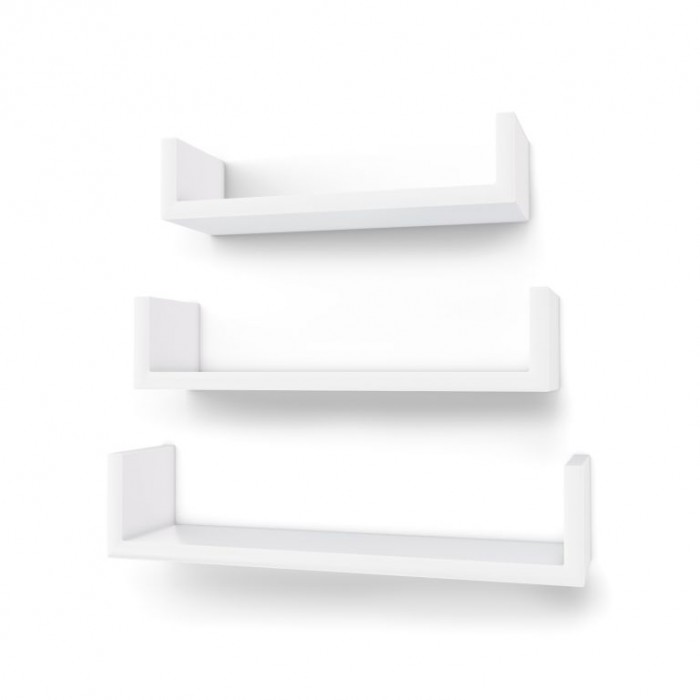 Popis: Sada 3 bílých nástěnných polic, vysoký lesk