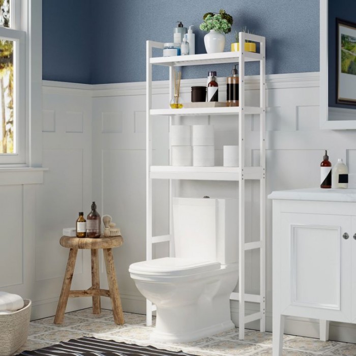 Vneste do své koupelny svěžest a pořádek. Tato třípatrová police z bambusu v elegantní bílé barvě nabízí dostatek prostoru pro všechny vaše hygienické potřeby, aniž by zabírala mnoho místa. Nastavitelné police se přizpůsobí vašim potřebám, ať už ukládáte malé kosmetické produkty nebo vysoké lahve šamponu.