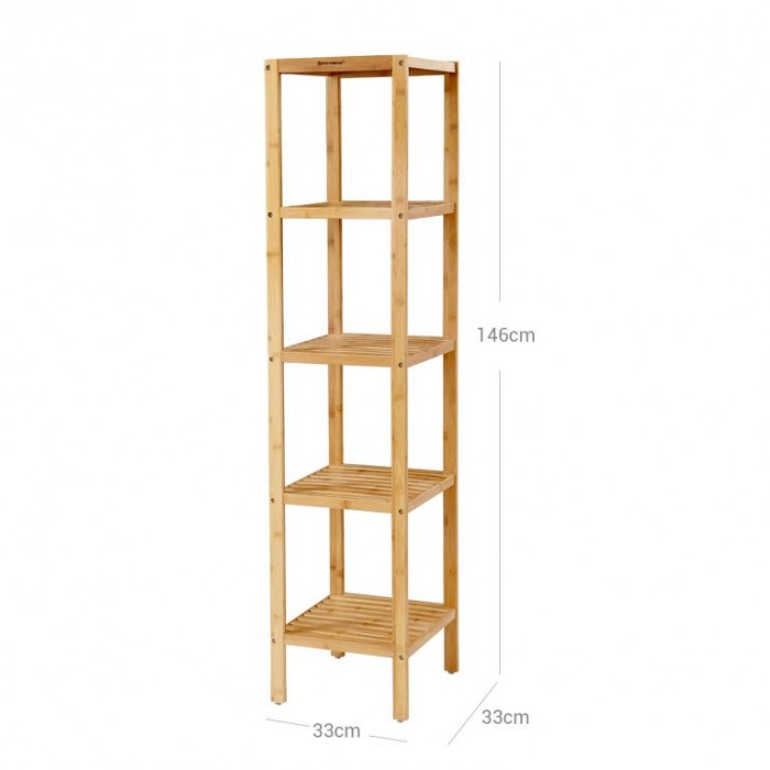 Přírodní bambusový regál, 5 polic, 33x33x146 cm