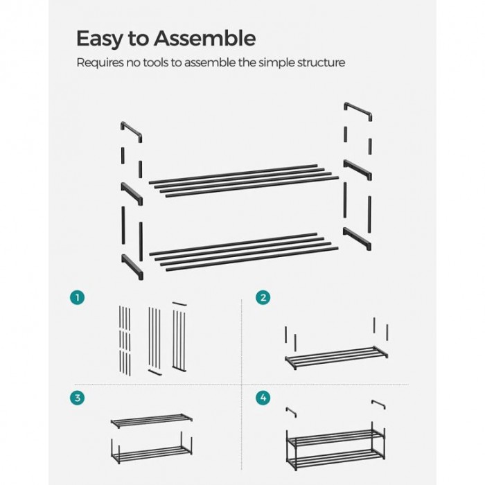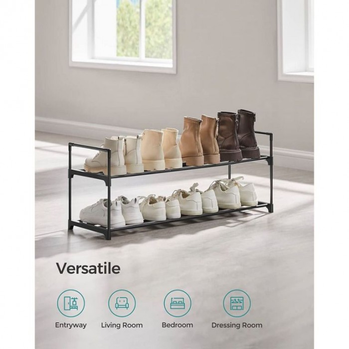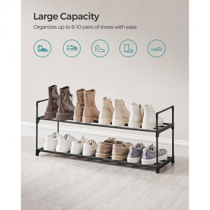Udržujte svůj domov uklizený a stylový s kovovým 2patrovým stojanem. Ideální pro předsíně, ložnice či obývací pokoje, pomáhá rychle a přehledně uložit až 10 párů bot. Díky modernímu černému designu se hodí do jakéhokoli interiéru a šetří cenný prostor.