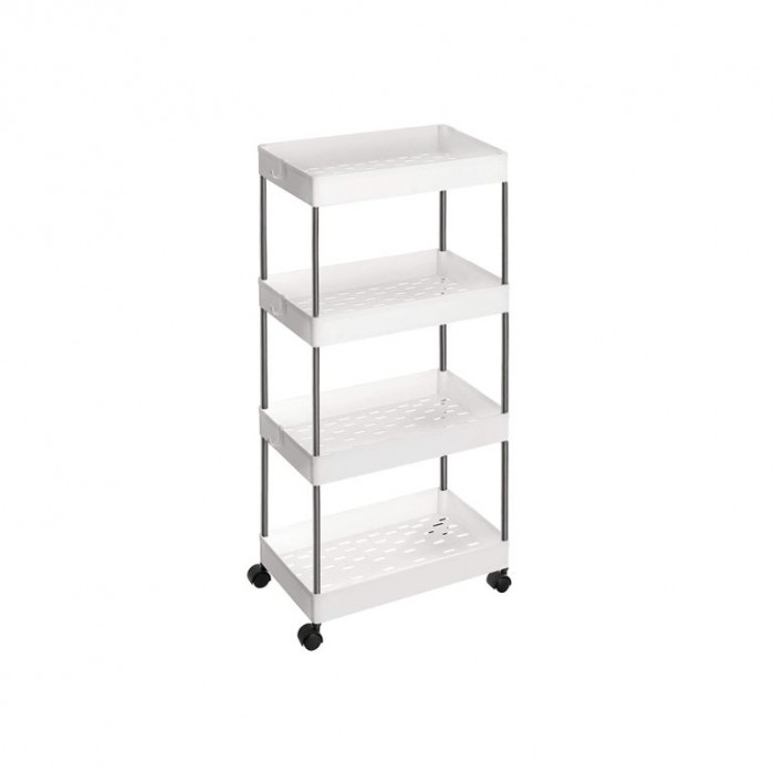 Už žádný nepořádek! Tento úzký regál na kolečkách vám pomůže zorganizovat koupelnu, kuchyni i kancelář. Díky čtyřem policím a šesti háčkům budete mít vždy vše po ruce a vaše domácnost získá nový řád. Elegantní bílý design navíc skvěle zapadne do každého interiéru.