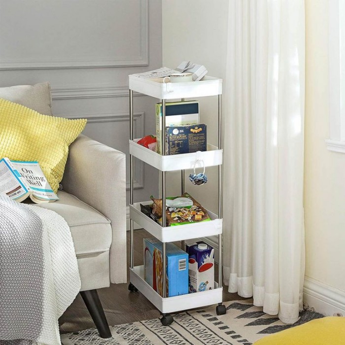 Úzký pojízdný regál na kolečkách, 4 patra, 40x22x86 cm, bílý