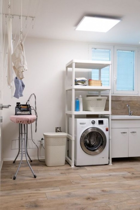 Regál k pračce se třemi policemi je jednoduchým a chytrým řešení pro získání dodatečného prostoru v koupelně, prádelně či technické místnosti s důrazem na funkčnost, udržitelnost a jednoduchou údržbu.