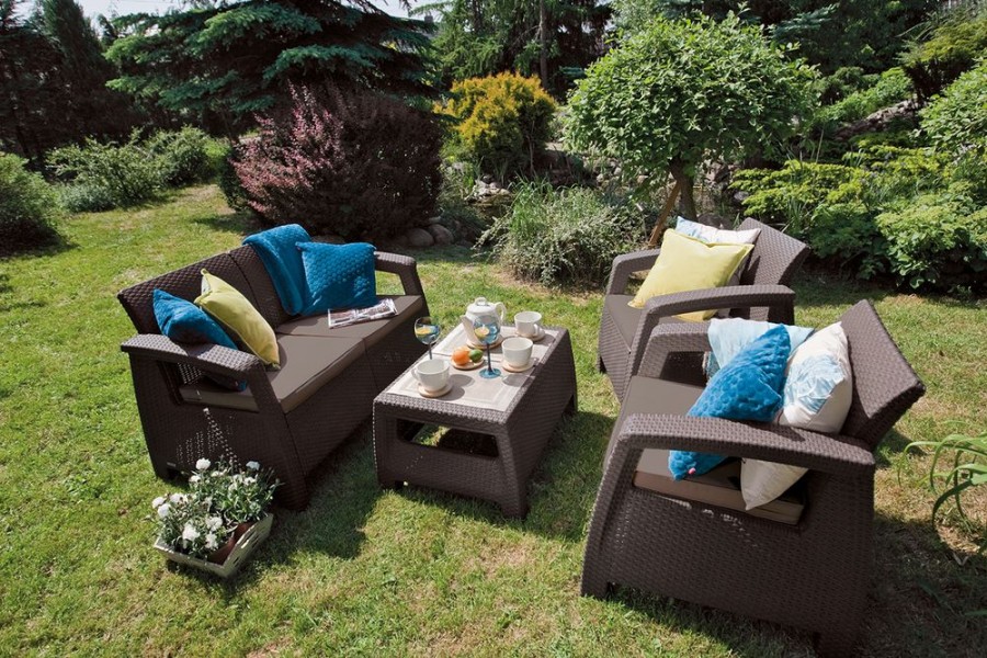 Souprava Corfu je pohodlné a moderní posezení jak ven, tak do interiéru. Souprava je vyrobena z lisovaného plastu v imitaci přírodního ratanu. Set je doplněn o podušky, které zajistí ještě větší pohodlí. Tato souprava patří k nejprodávanějším v této kategorii.