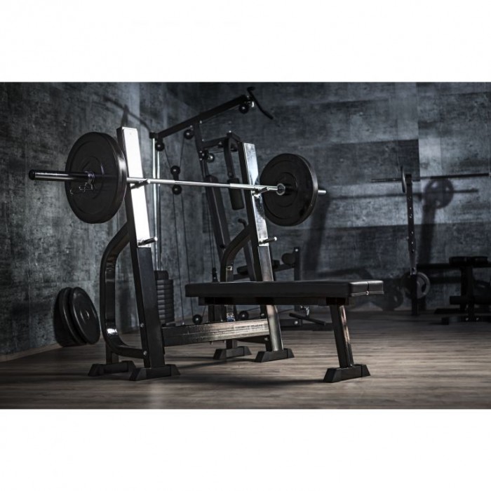 Ideální je rám, který pevně spojuje lavici a stojan na činky. V případě pevné tlakové lavice to znamená celkovou hmotnost 40 kilogramů. Jedná se o stabilní základ pro trénink v nejvyšší váhové lize se zátěží až 250 kilogramů. Kvalitní profesionální posilovací lavice by měla být navržena tak, aby na ni mohl partner při tréninku snadno vstoupit a poskytnout oporu, aniž by se musel nezdravě kroutit dopředu. U masivní tlakové lavice se partner může pohybovat celým tělem v blízkosti činky. To mu umožňuje rozvíjet pákový efekt ve vzpřímené poloze.