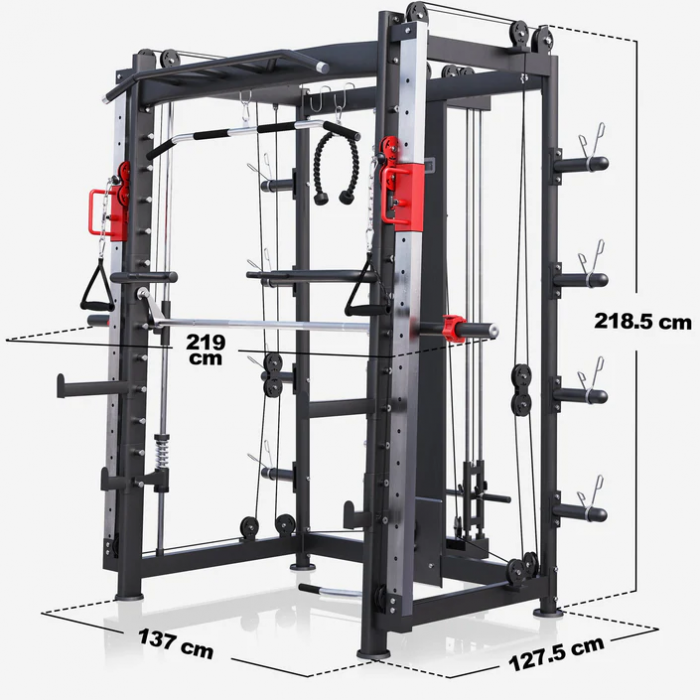Posilovací stroj umožňuje trénovat všechny svalové skupiny vertikálně i horizontálně. Zkombinujte stroj s posilovací lavicí a získáte multifunkční posilovnu. Díky mnoha tréninkovým možnostem můžete kdykoli absolvovat fitness program jako profesionál, a to podle svých osobních preferencí a úrovně trénovanosti ve svých vlastních čtyřech stěnách. Robustní ocelová konstrukce jednotky zaručuje dostatečnou stabilitu pro jakýkoli tréninkový program.