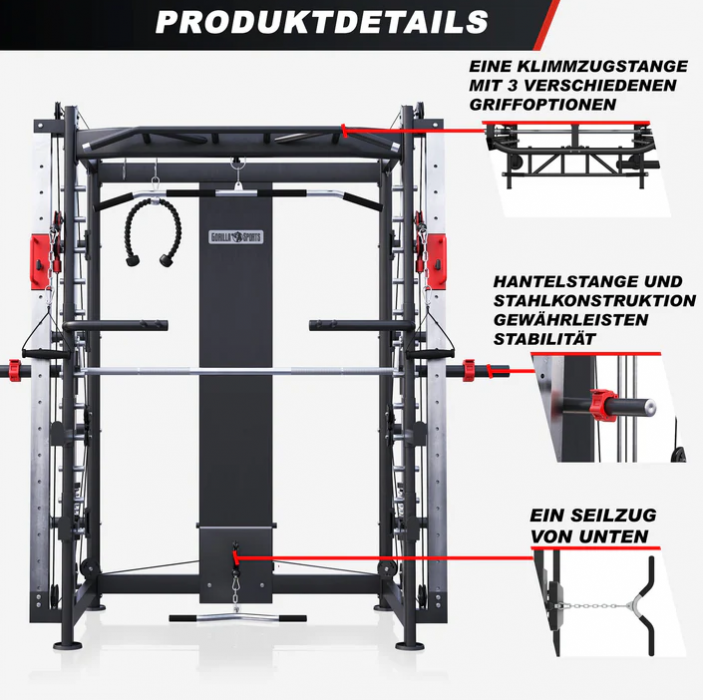 Popis: Gorilla Sports Multifunkční kladková věž, 219 cm, černá