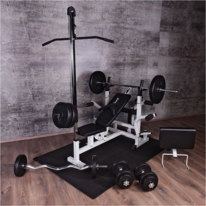 - Posilovací lavice s nastavitelnými prvky a přídavnými moduly pro variabilní cvičení: Lavice s curl lavicí, beincurlerem a dip držáky umožní snadné přizpůsobení cvičení na míru – jak mužům usilujícím o sílu, tak ženám zaměřeným na formování postavy.
