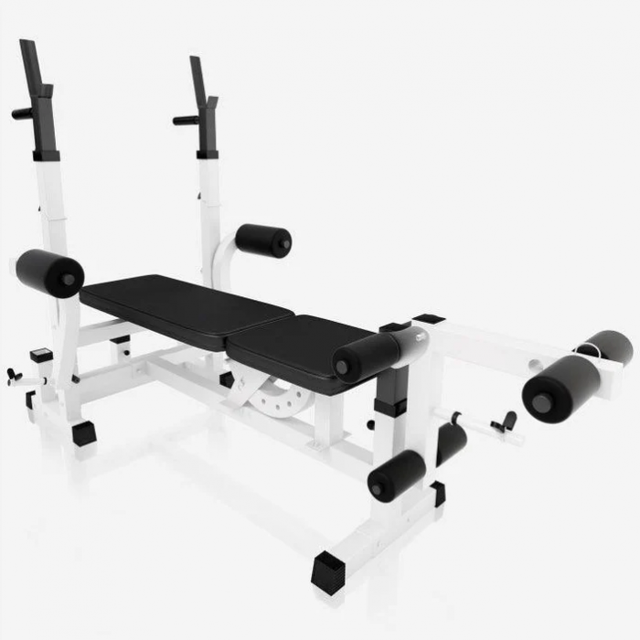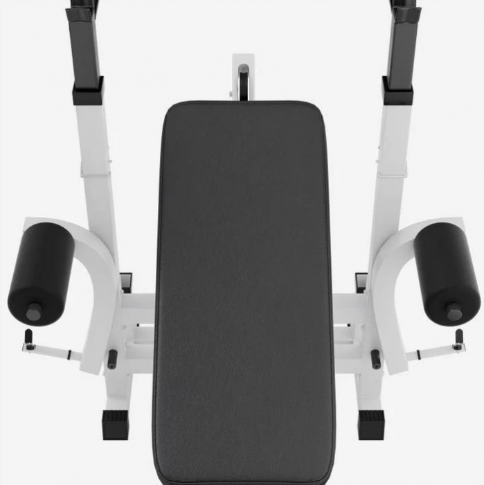 Robustní konstrukce z litiny zaručuje dlouhou životnost a bezpečnost při cvičení. Šestisměrně nastavitelné opěradlo, tři polohy pro leg press a pětisměrný stojan na činky umožní přesné přizpůsobení vašim potřebám. Rychlá montáž a snadná údržba dělají z této stanice ideální volbu pro každého, kdo chce mít kvalitní domácí posilovnu.