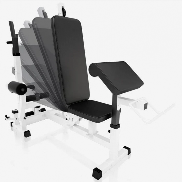 - Variabilní nastavení – lavice, opěradlo i stojany lze přizpůsobit.