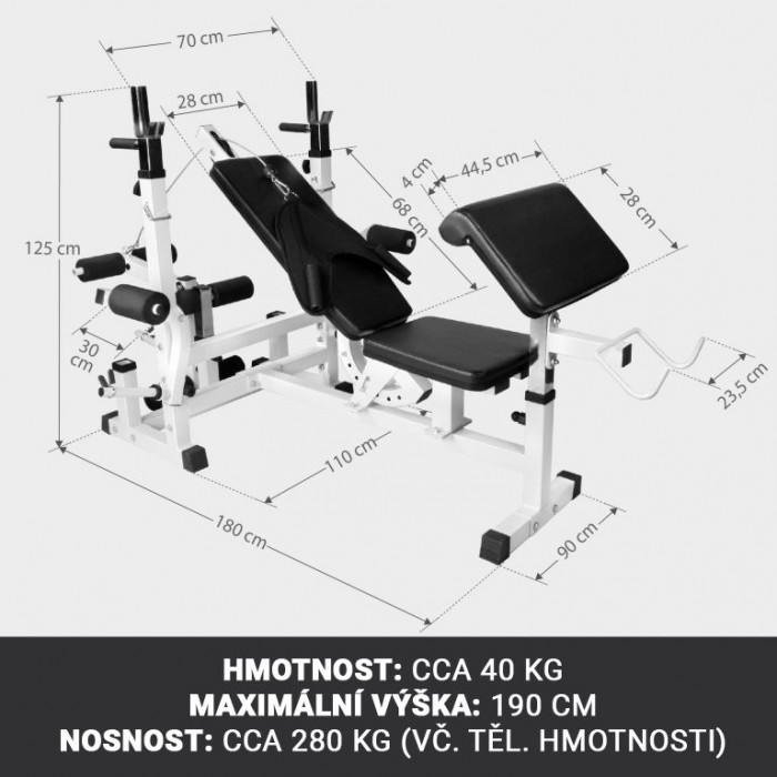 Svým kvalitním provedením, kompletním vybavením a jednoduchou manipulací je univerzální lavice ideální pro vaši domácí posilovnu. Posilovací lavici, která je k dispozici v černé a bílé barvě, lze v několika jednoduchých krocích individuálně přizpůsobit vašim potřebám.