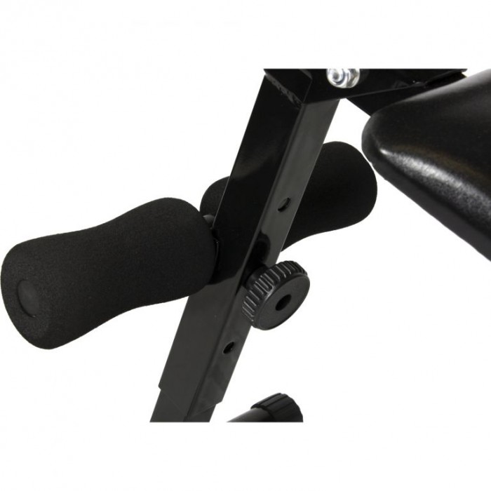 Sklon této lavičky umožňuje výrazně zintenzivnit trénink každého břišního svalu ve srovnání s provedením na vodorovné úrovni jak moc, lze individuálně nastavit ve třech krocích podle osobních potřeb. Aby se trénink na nakloněné rovině nestal balancováním, má tato lavička praktické podpěry nohou, které zajišťují a fixují tělo, aniž by ho nutily do nepohodlné polohy. Díky 10 různým variantám úchopu nabízí tato multifunkční tyč pro montáž do rámu dveří více než dostatečný potenciál pro trénink všech "svalů"