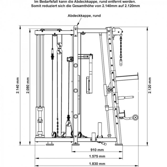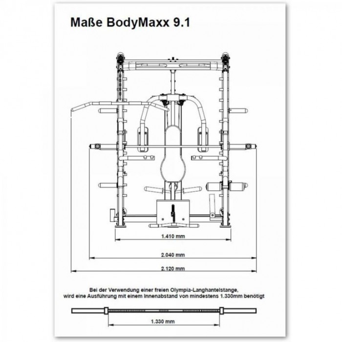 Ocelová konstrukce Multipressu 9.1 zaujme vynikajícím zpracováním a stabilitou. Trénink s těžkými váhami vyžaduje maximální stabilitu a vysokou hmotnost, která udrží váhu a zabrání zkroucení. Tréninková lavice, která je součástí dodávky, stojí bezpečně na podlaze díky své těžké ocelové konstrukci. Opěradlo tréninkové lavice je nastavitelné v mnoha směrech. U věže se nehledělo na prostor v místnosti, ale na možnost efektivního a co nejergonomičtějšího cvičení.