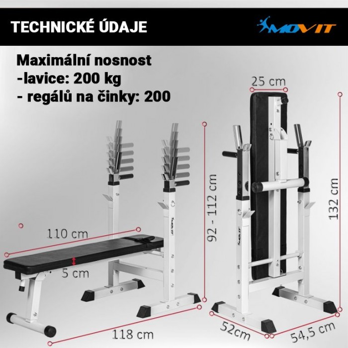 Popis: MOVIT Posilovací lavice, bílá, 1180 x 545 x 1120 mm