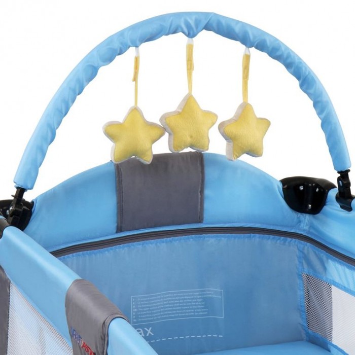 Tato dětská postýlka je opravdu praktická. Nabdne Vám hrací oblouk a přebalovací podložkou pro kojence. Matrace je polstrovaná. Herní oblouk je se zavěšenými plyšovými hvězdami. Postýlka má praktický vstup na zip a úložný prostor na předních stranách, polstrované hrany a zaoblené rohy pro děti do věku 36 měsíců nebo pro maximální hmotnost cca 15 kg. Omyvatelný potah Vám nabízí snadnou údržbu. Postýlka se snadno složí a úsporně uschová.