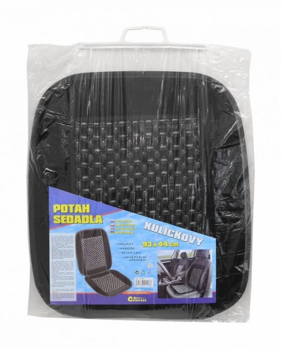Potah s pevným lemem, má výplň z dřevěných kuliček, které příjemně masírují tělo, podporují krevní oběh, pomáhají snižovat únavu i bolestivost zad a umožňují proudění vzduchu mezi sedadlem a zády řidiče. Pokud potah na sedadlo pouze položíte (bez připevnění na opěradlovou část sedadla), je možné potah použít i na sedadla se zabudovaným bočním airbagem přímo v opěradle.