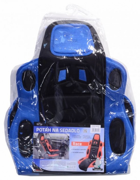 Popis: Potah sedadla Race - univerzální, černo/modrý