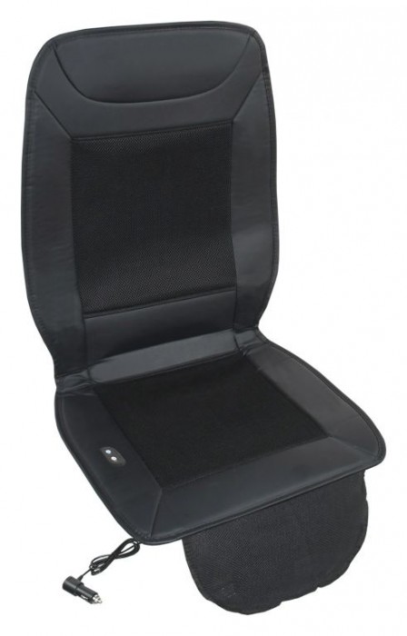 Kombinovaný potah sedadla z velice příjemného materiálu s vyhříváním a ventilátorem pro ohřev/ventilaci zádové a sedací části. Integrovaný ovladač zajistí snadnou volbu jednoho ze tří stupňů intenzity větrání/váhřevu. Potah je ideálním doplňkem pro příjemnou jízdu v chladných, ale i horkých ročních obdobích. Zapojení do běžné zásuvky automobilového zapalovače pomocí konektoru. Univerzální systém upevnění pomocí háčků a pružných popruhů, kterými lze připevnit na většinu běžně používaných automobilových sedadel. Potah lze použít i na sedadlech, která mají zabudovaný boční airbag přímo v opěradle předních sedadel.