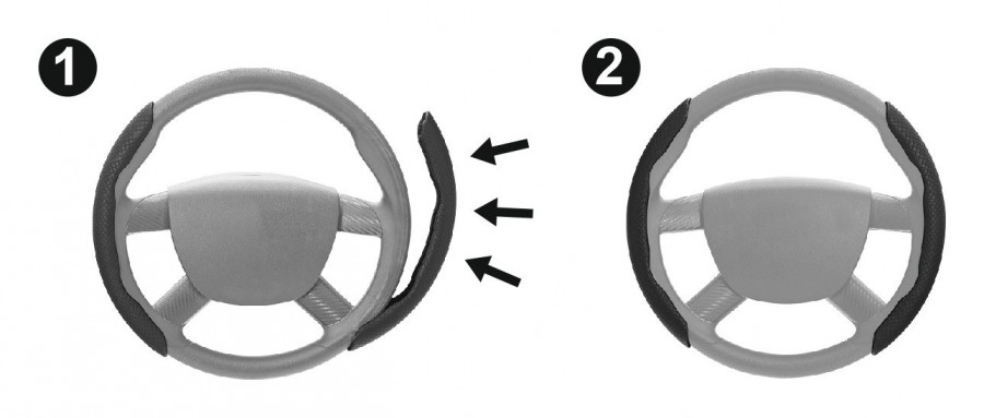 Segmentový potah se snadno nasazuje a zajišťuje pevný úchop. Jeho umístění zabraňuje opotřebení volantu přesně v místě kde je nejčastěji držen.