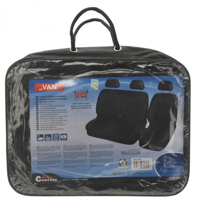 Potahy sedadel s univerzálním systémem upevnění, pro přední sedačky dodávek.