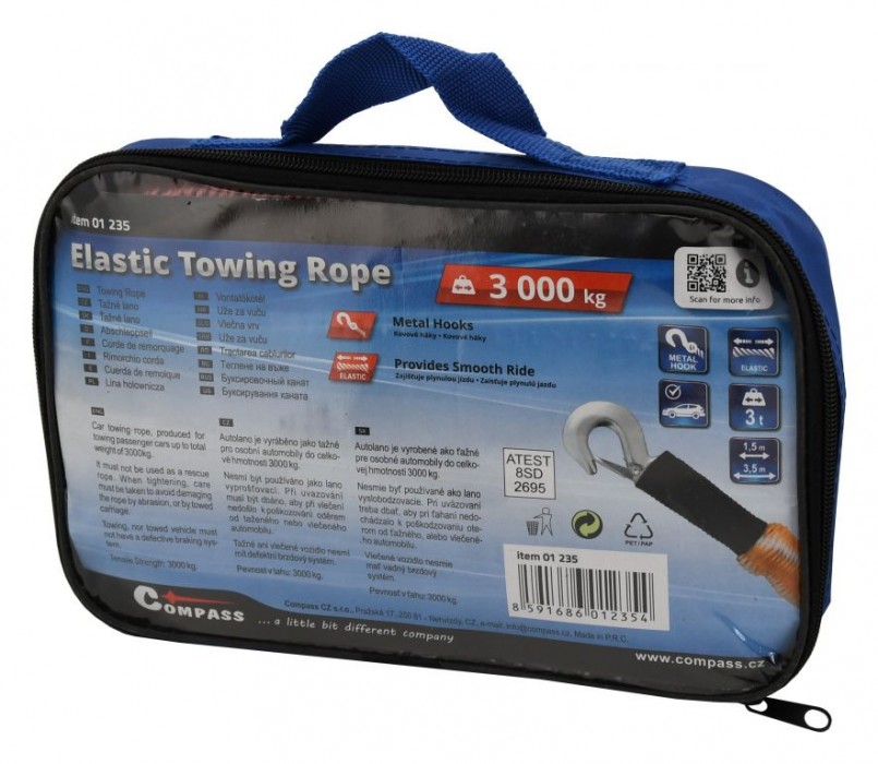 Pružné lano je z původních 1,5 m možné protáhnout až do délky 3,5 m. Díky těmto skvělým vlastnostem, je možné plynulé rozjíždění při tažení a menší opotřebení tažných ok a dalších důležitých částí karoserie a podvozku vozidel. Konstrukce kovových háků zaručuje vysokou pevnost a také bezpečně uchycení.