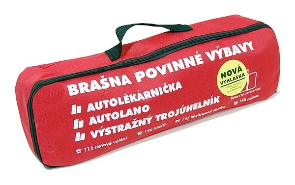 Textilní brašna je uzavíratelná na zip a vybavena pásy suchého zipu na spodní straně pro snadné přichycení. Brašna obsahuje autolékárničku vybavenou podle vyhlášky č. 341/2002 Sb., ve znění vyhlášky č. 216/2010 Sb. a vyhlášky 182/2011 Sb. Ministerstva dopravy.